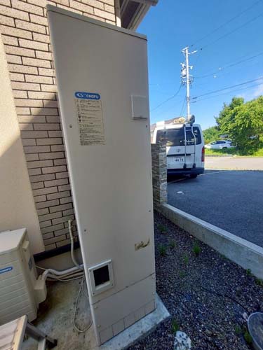 廿日市市旭町 コロナ自然冷媒CO2家庭用ヒートポンプ給湯機 ヒートポンプユニットCHP-DZ451K エコキュート交換工事|広島・呉市のガス給湯器交換・取り付け工事は広島給湯器.comにお任せください。