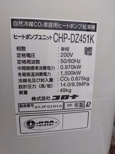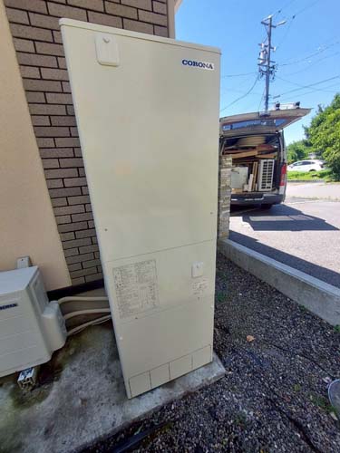 廿日市市旭町 コロナ自然冷媒CO2家庭用ヒートポンプ給湯機 ヒートポンプユニットCHP-DZ451K エコキュート交換工事