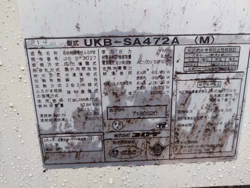 尾道市幸町 コロナ石油給湯機付ふろがまUKB-SA472A(M) 給湯器交換工事